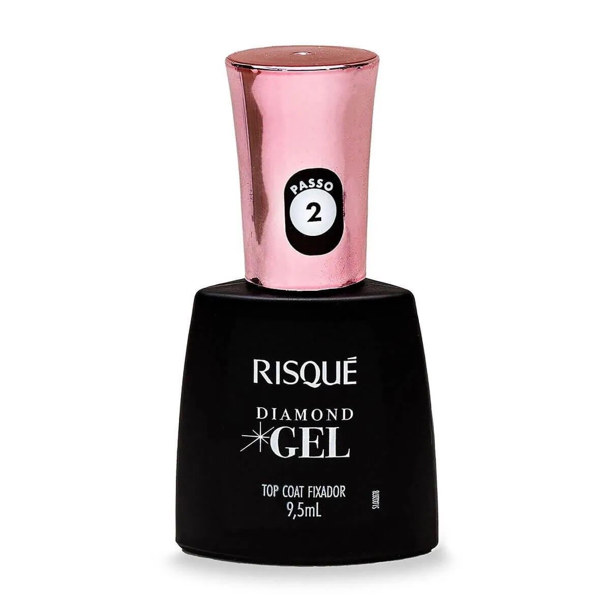 O Top Coat Fixador Diamon Gel Risqué, vai garantir o efeito gel nas sias unhas. Após a aplicação do esmalte com cor da linha (Passo 1), aplique o Top Coat (Passo 2), que foi especiamente desenvolvido para proporcionar durabilidade e alto brilho. Seu pincel possui 800 cerdas para dar precisão na aplicação do produto e sia formula hipoalergenica é livre de substancias que podem causar alergia. Conheça a linha Diamond Gel Risqué: São 20 Cores Exclusivas!